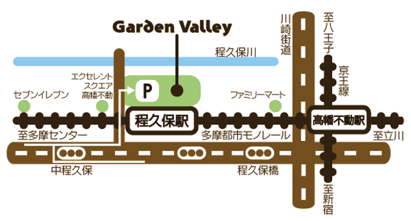 多摩センター・平山・多摩動物公園方面からお越しの際は程久保駅直前を左折し、駐車場